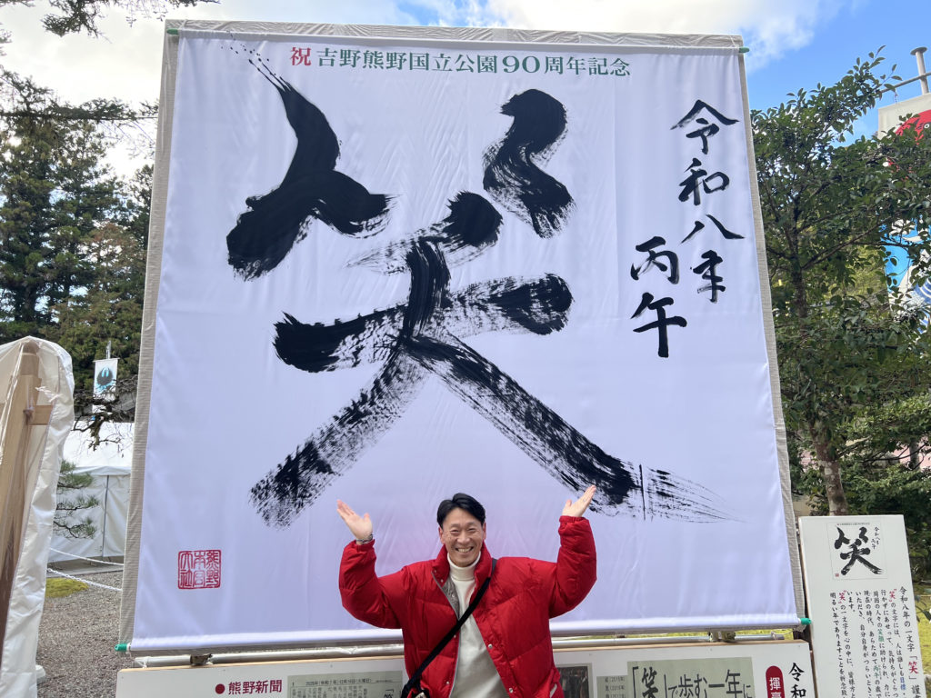 最後に訪れた熊野本宮大社で僕の座右の銘「笑」を見つけました。必ず来年も笑います(笑)